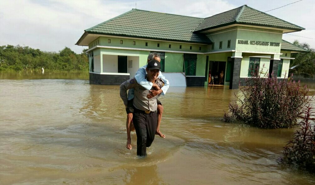 ,Brigadir Harvani Turut Melaksanakan Pemantauan dan pengecek di Wilayah hukum Polsek Karang Bintang yang terendam air akibat meluapnya air sungai Karang Bintang di yang berdampak di Tiga Desa Yaitu Desa Karang Bintang,Desa Sela Selilau dan Desa sumber wangi.