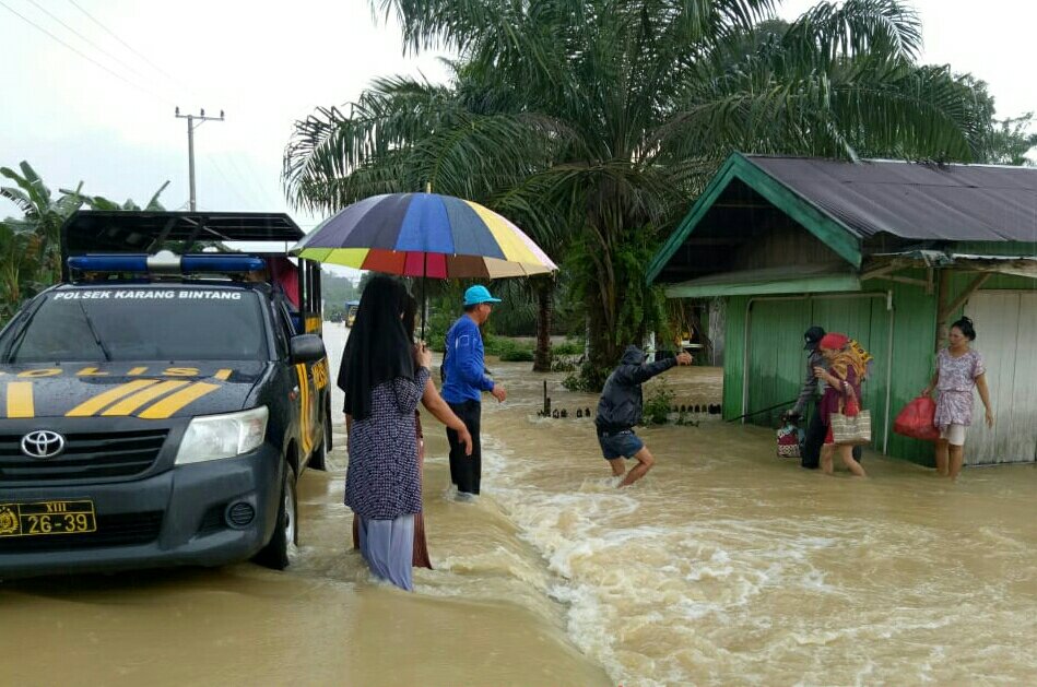 Hingga Saat ini diperkirakan Ketinggian air mencapai 70 cm.Warga Desa Karang Bintang yang rumahnya terendam air Langsung di ungsikan ditempat Rumah Kantor Bhabinkamtibmas dan Kantor Desa Karang Bintang.
