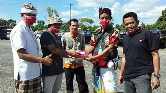 Kabarbanua.com,Tanah Bumbu-Tim Badan Penanggulangan Bencana (BAGUNA), PDI Perjuangan Kabupaten Tanah Bumbu membagikan masker secara gratis kepada masyarakat di Sungai Loban, Minggu (22/3/2020). Pembagian masker tersebut untuk mengantisipasi penyebaran virus corona (COVID-19) di Kabupaten Tanah Bumbu.