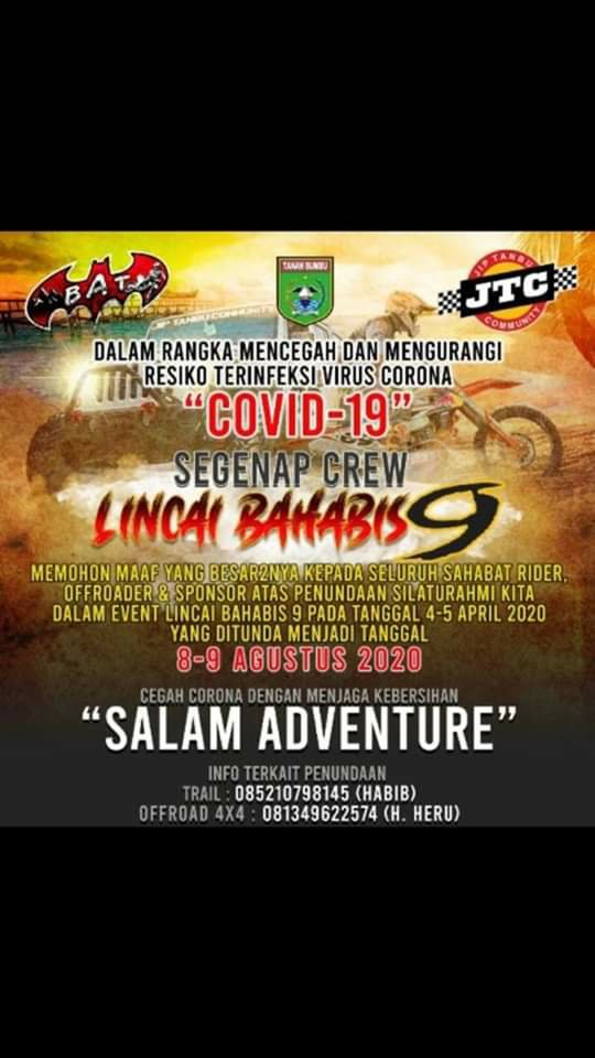 Untuk Informasi lebih lanjut tentang penundaan Event Lincai Bahabis 9 bisa menghubungi