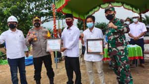 Giat apel dan kesiapsiagaan penanggulangan Karhutla dirangkum dengan simulasi kebakaran, serta pemberian Reward dan pemberian bantuan lengkap alat damkar kepada dua desa bebas api yang turut serta peduli dalam membantu penanganan kebakaran hutan dan lahan ( Karhutla ) kepada masing kepala desa.