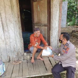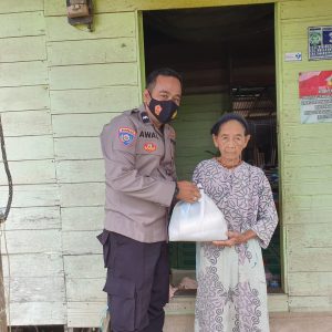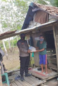 Aipda Awaluddin Noor SH mendatangi setiap permukiman warga yang kurang mampu atau lebih tepatnya terdampak dari covid-19 ini dengan memberikan paket sembako kepada mereka.