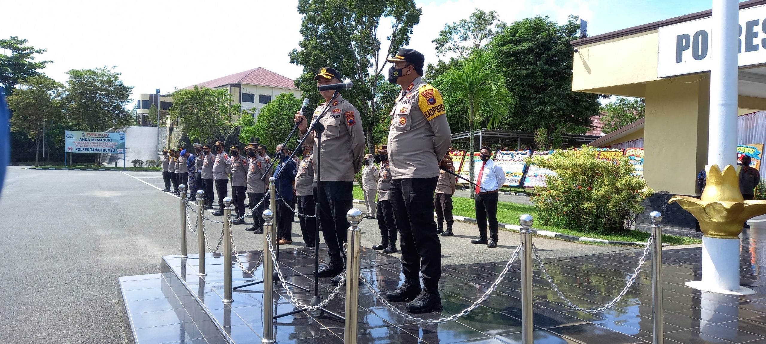 Kabarbanua.com, Tanah Bumbu- Polres Tanah Bumbu menggelar acara Pisah Sambut Kapolres Tanah Bumbu Baru dan Lama yang dilakukan langsung oleh AKBP Himawan Sutanto Saragih kepada AKBP Tri Hambodo di halaman Mapolres Tanbu, Kalimantan Selatan, Rabu (5/1/2022).