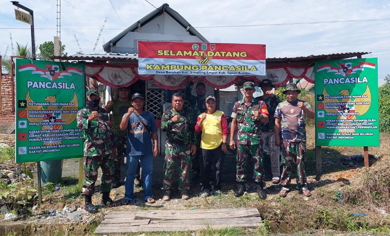Kabarbanua.com,Tanah Bumbu- Pos Siskamling Induk yang berada didesa Baroqah tepatnya di Jalan Fetran RT 07 yang berdekatan langsung menuju kantor Desa Baroqah dipasang Banner yang bertuliskan ” Selamat Datang Dikampung Pancasila” oleh jajaran Koramil 01 Simpang Empat Kodim 1022 Tanah Bumbu. Selasa 29/3/22.