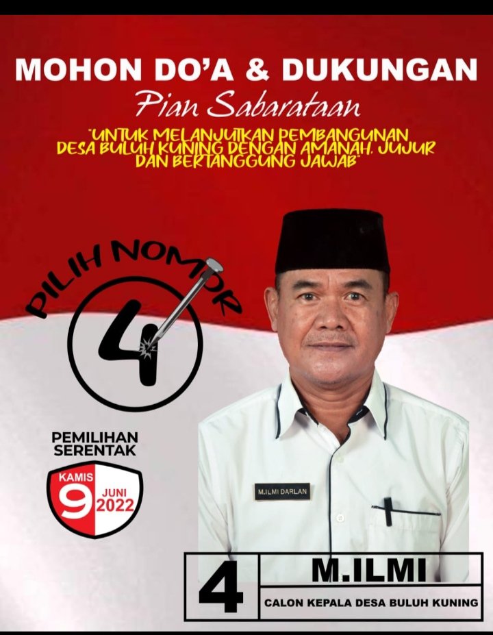“Karena semasa kepemimpinan M.Ilmi Darlan Desa Buluh Kuning semakin terlihat kemajuannya. Baik dari segi pembangunan maupun keamanan di masyarakat,” ungkap seorang warga, Fahrul, Minggu (05/06/22).