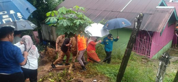 Terpantau di lapangan, dengan menggunakan payung orang nomor satu di Bumi Saija’an ini didampingi ketua TP PKK bersama SKPD mendatangi lokasi. Jalan menurun, sempit tidak menyurutkan Bupati menyambangi warganya yang terdampak pasca musibah kebakaran lalu.
