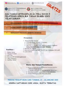 Kabarbanua.com,Tanah Bumbu- Hallo Warga Tanah Bumbu, Mau Tambah Keterampilan Ga Perlu Bayar !!!.