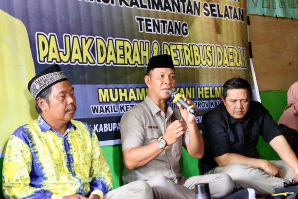 Kotabaru – Wakil Ketua Komisi II DPRD Kalsel Muhammad Yani Helmi kembali mensosialisasikan Peraturan Daerah (Perda) tentang Pajak Daerah dan Retribusi Daerah, di Desa Mekarpura Kecamatan Pulau Laut Tengah Kabupaten Kotabaru, Sabtu (2/12).