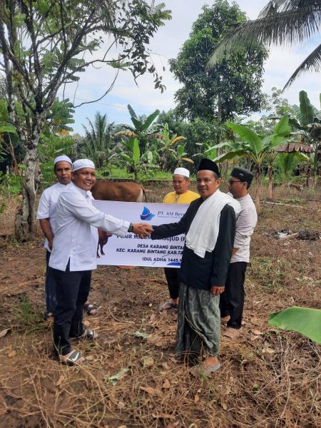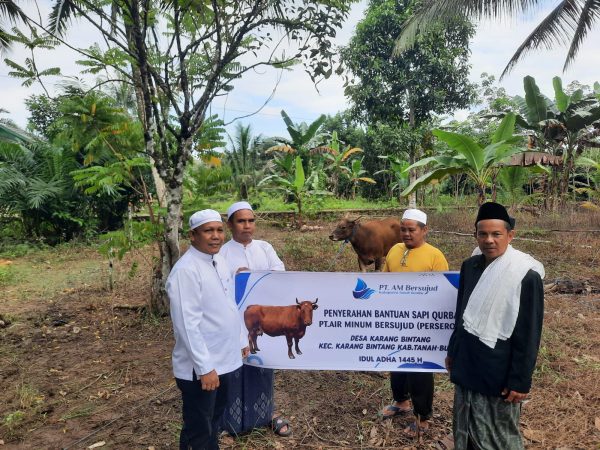 Kabarbanua.com,Tanah Bumbu- Dihari raya Idul Adha Tahun 1445 H / 2024 kembali pihak PT. Air Minum Bersujud salurkan bentuk kepedulian kepada masyarakat dengan cara menyumbangkan 2 Ekor Hewan Qurban berupa (Sapi).