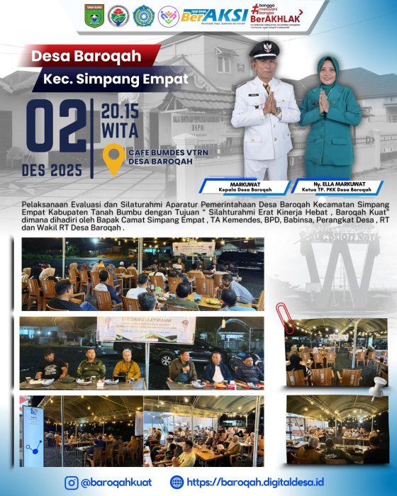 Kabarbanua.com,Tanah Bumbu- Pemerintahan Desa Baroqah lakukan Terobosan baru melalui rapat evaluasi sekaligus silaturahmi dengan pihak Kecamatan Simpang Empat dan Pihak Terkait.