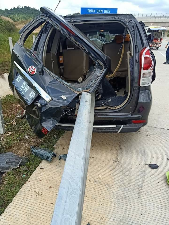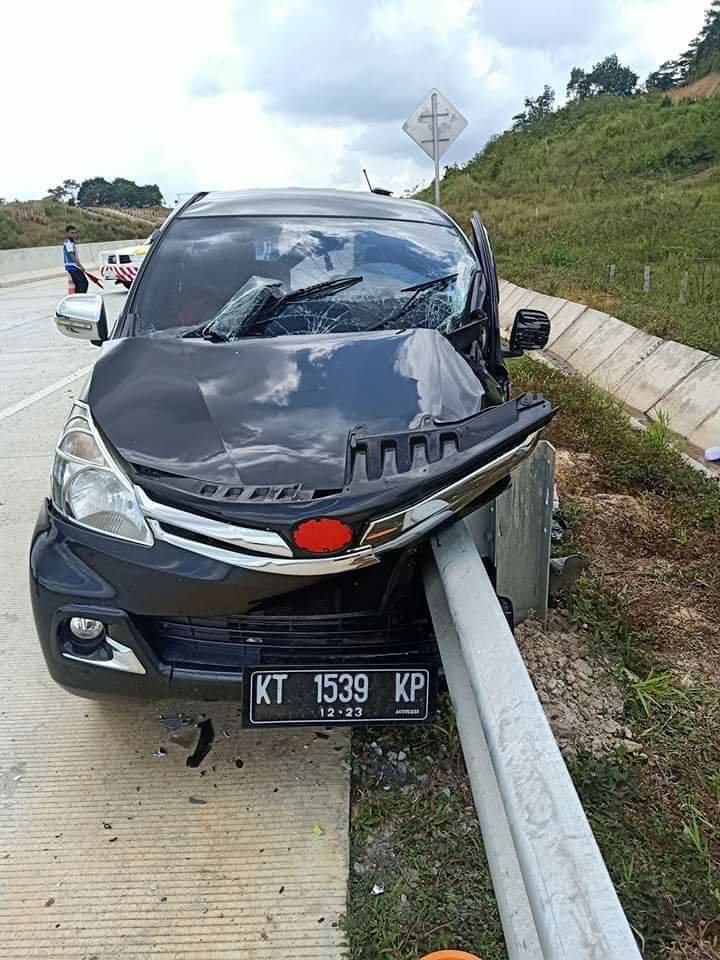 Tak tanggung-tanggung, guard rail atau pelindung jalan ditabrak pengemudi roda empat karena kehilangan kendali. Kronologisnya, minibus bernopol KT 1539 KP dari arah Balikpapan menuju Samarinda dengan kecepatan tinggi menghantam pelindung jalan hingga membuat mobil ringsek parah.