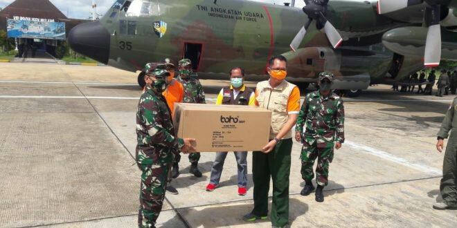 Bantuan APD yang kelima kalinya ini tiba di Bandara Tjilik Riwut Palangka Raya, Jumat (24/4/2020) sekitar pukul 12.38 WIB. Logistik ini diangkut dengan menggunakan pesawat TNI AU tipe C-130 Noreg A-1335 dari Lanud Supadio Pontianak.
