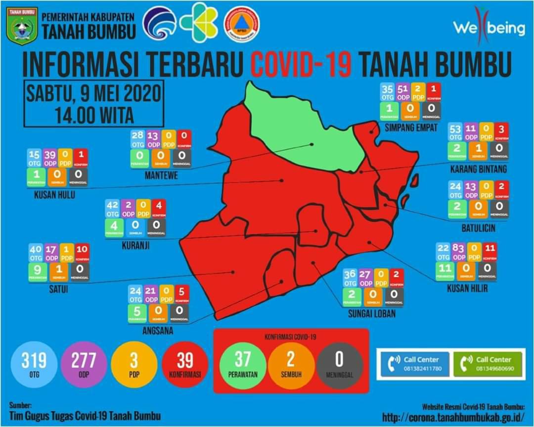 Dari data yang diperoleh dari Tim Gugus Tugas Penanganan Covid-19 sudah ada 39 orang yang positif terpapar Covid-19 di Kabupaten Tanah Bumbu. Hal tersebut disampaikan oleh Koordinator Humas Gugus Tugas Covid-19 Tanah Bumbu, Ardiansyah, Sabtu (09/05/2020).