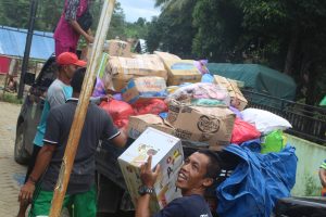 Dari ke 3 Pick Up Logistik tersebut terdiri dari puluhan karung Pakaian Bekas layak pakai, Minyak Goreng, Kopi, Teh, Gula, Air mineral, Mie Instan, Pembalut dan Popok Bayi, Obat nyamuk dan Lilin.