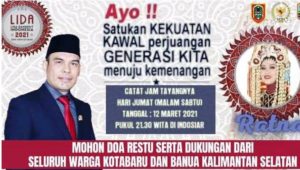 “Kepada masyarakat khususnya Kabupaten Kotabaru dan Kalimantan Selatan umumnya, mari berikan dukungan serta doa pada duta Kalsel Ratnasari diajang LIDA Indonesia 2021 live Indosiar,” ungkapnya.