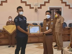 Penghargaan ini diserahkan langsung oleh Wakil Bupati Kotabaru Andi Rudi Latif di Operation Room Setda, Selasa (18/5/2021).
