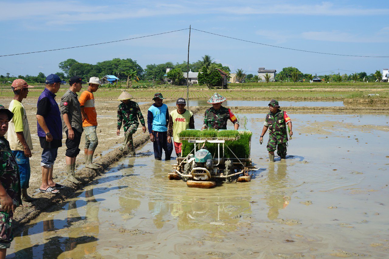 Dandim bahkan sempat melakukan penanaman padi dengan 2 cara yakni secara manual dan juga menggunakan mesin tanam secara otomatis.