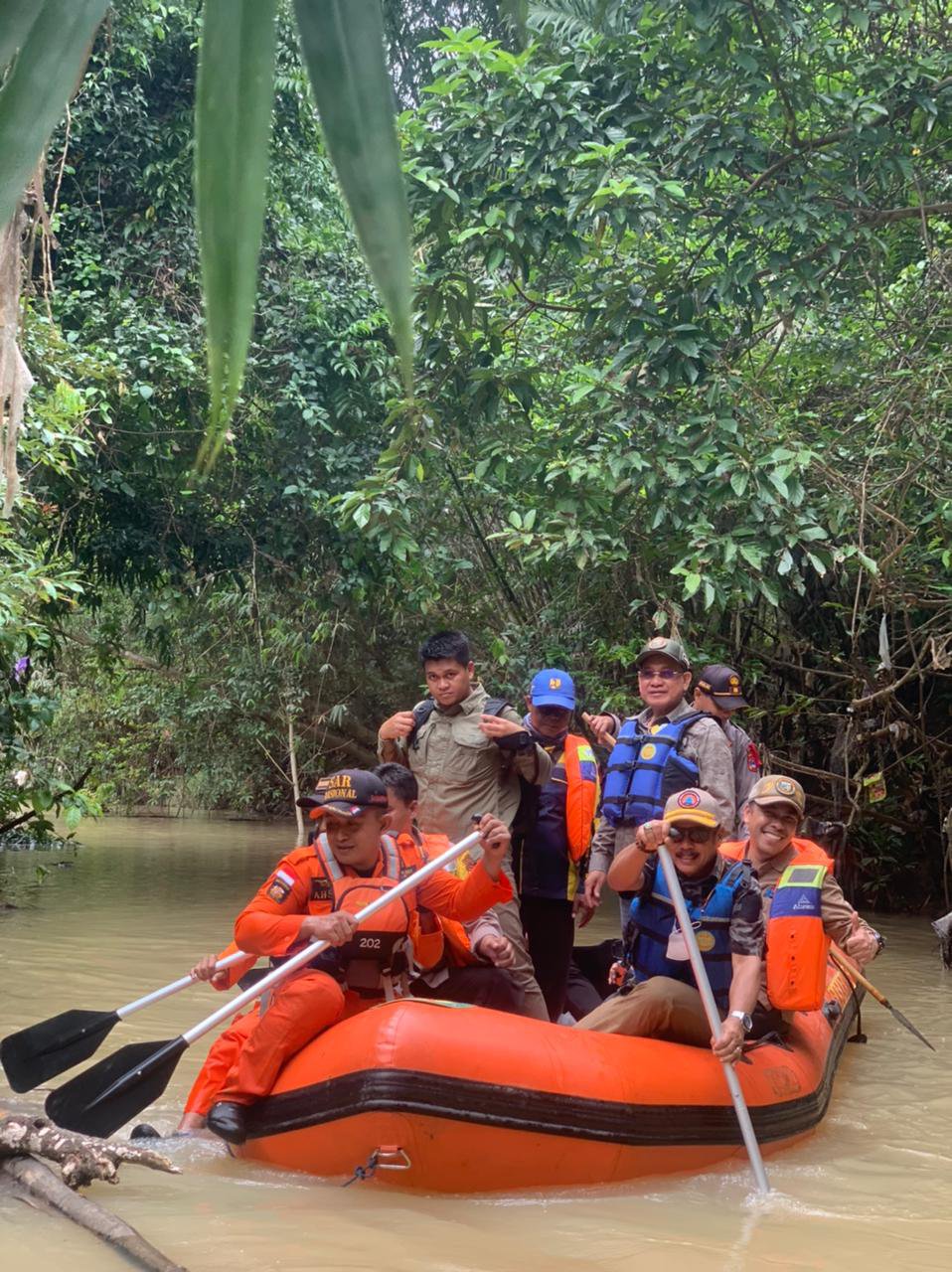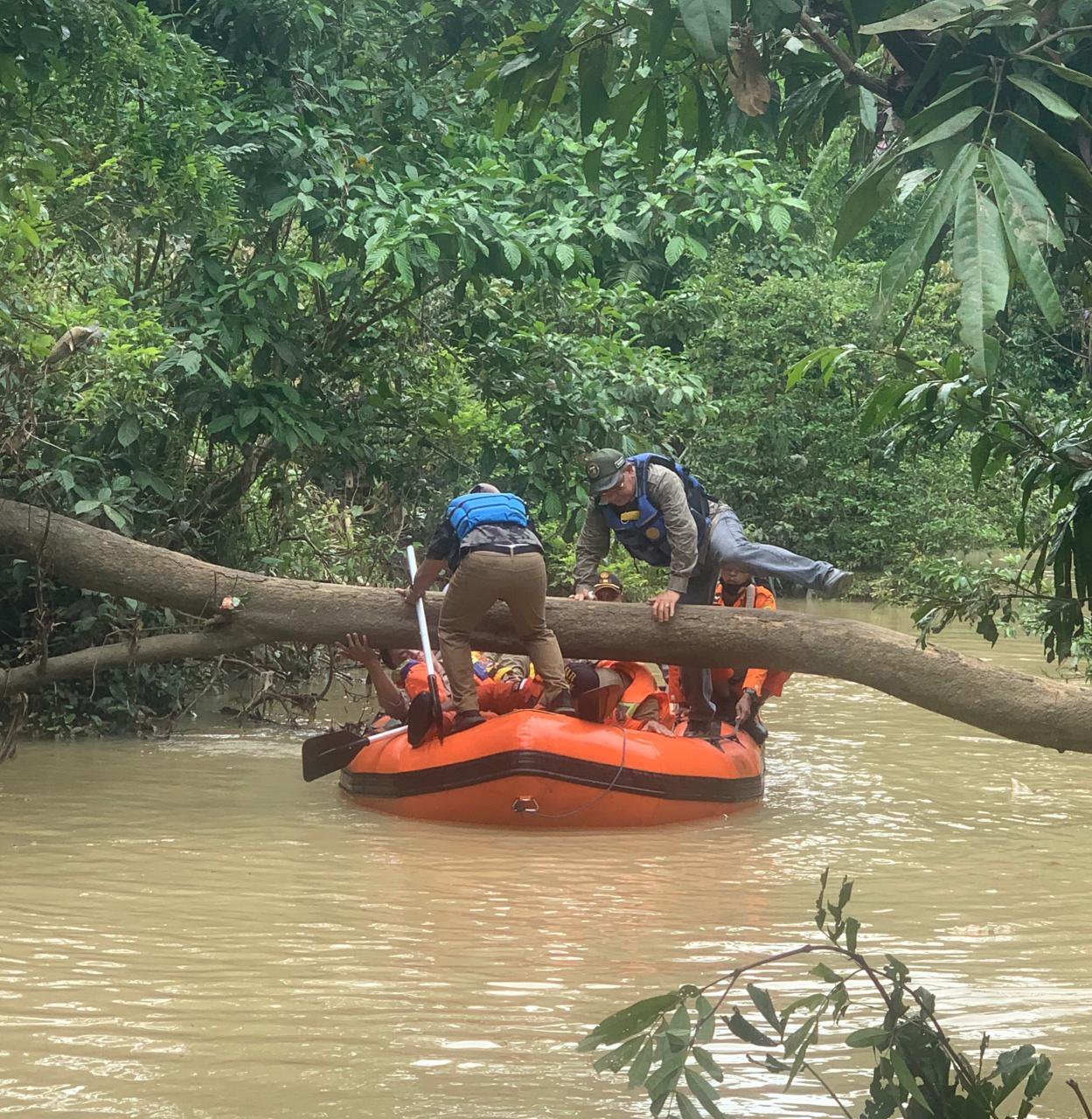 Dengan menggunakan perahu karet BPBD, Bupati Sayed Jafar didampingi Kadis PUPR, H.M.Maulidiansyah, Kepala BPBD Johanuddin, Camat serta Kapolsek Kelumpang Hilir telusuri wilayah sungai.