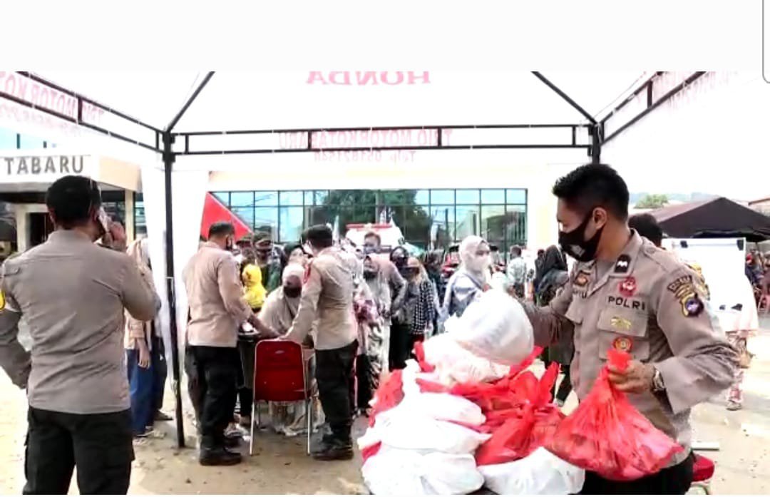 Turut dibagikan langsung ratusan paket sembako kepada warga yang beruntung dibalik kuponnya ada cap tanda sembako.