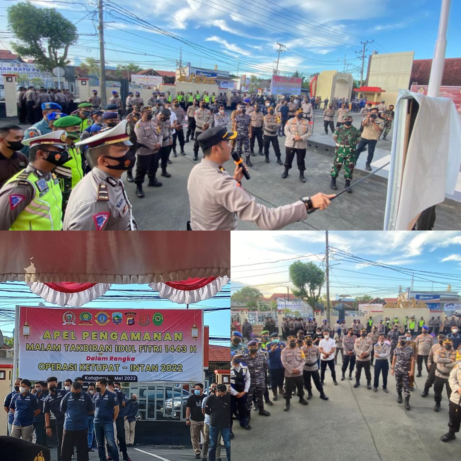 Pengamanan malam takbiran lebaran Idul Fitri 1443 Hijriyah ditandai dengan digelarnya apel gabungan di Mako Polres Kotabaru, Minggu (01/05/22).