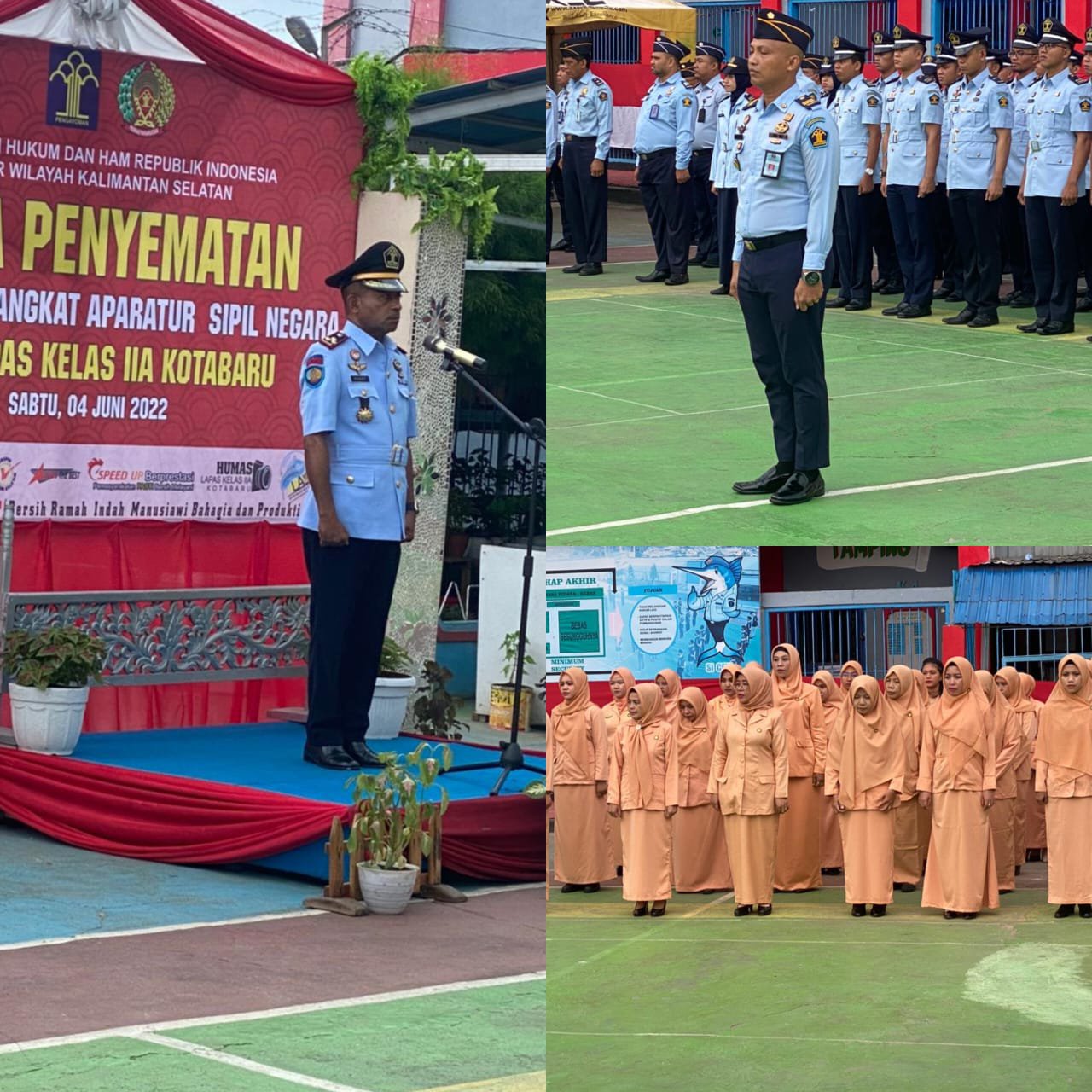 Apel diawali dengan pembacaan Surat Keputusan Kenaikan Pangkat dilanjutkan dengan penyamatan Kenaikan Pangkat yang baru oleh Kalapas Kotabaru.