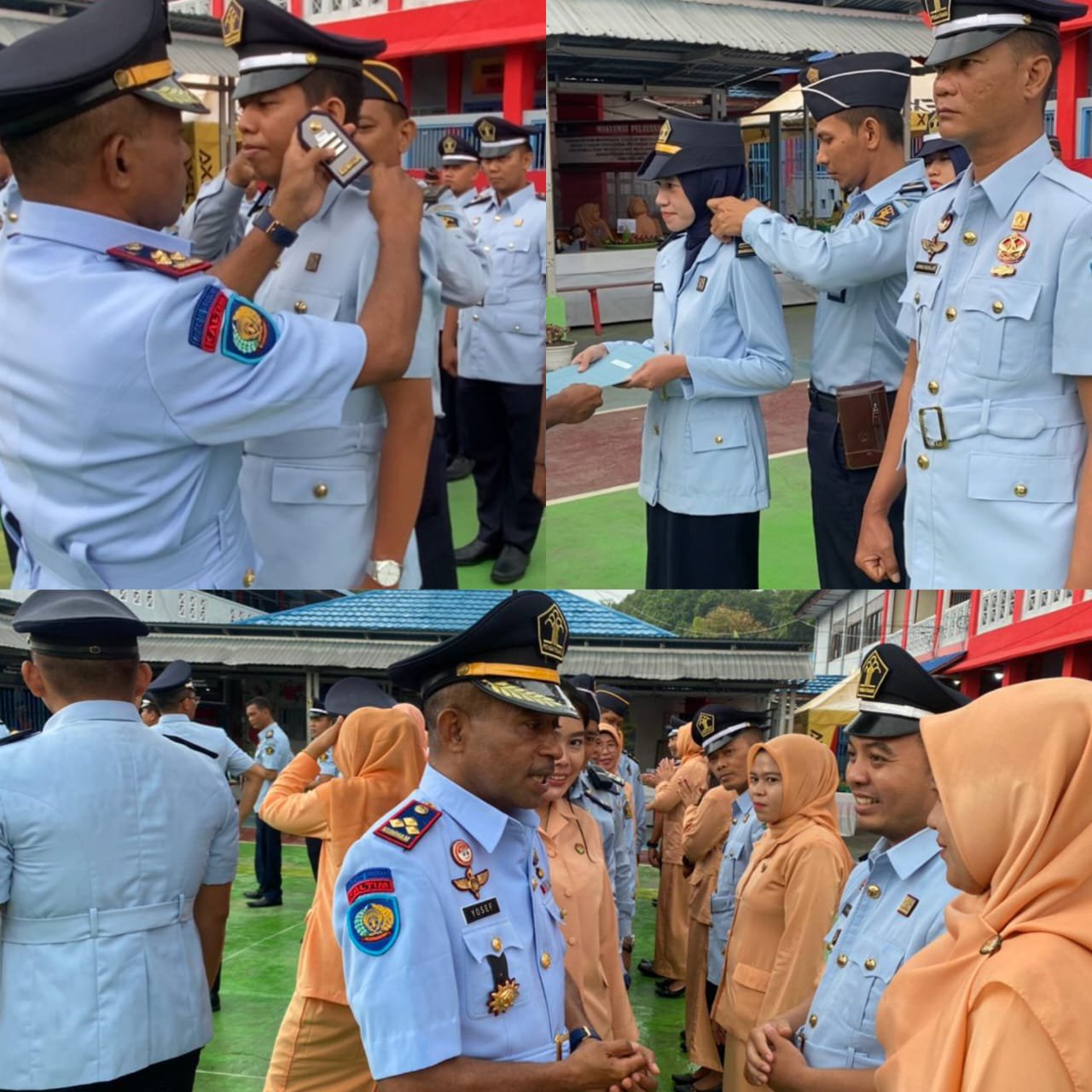 “Pertama-tama saya ucapkan selamat kepada 3 orang ASN Lapas Kotabaru yang pada hari ini naik pangkat. Saya ingatkan kepada anak-anakku sekalian untuk terus meningkatkan profesionalitas kinerja serta rasa kekeluargaan antara keluarga besar Lapas Kotabaru.” Ucap Yosef.