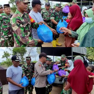Kepada media koordinator wilayah posko Satu Jiwa Pelda Indro Turseno mengatakan, kegiatan kita laksanakan sebelum salat Jum’at. Ada puluhan paket sembako dari hamba Allah kita bagikan bersama Koramil-04/Satui yang dipimpin oleh Pelda Suyono mewakili Danramil 04/Satui Lettu Inf Kuat Didik S. bersama relawan posko Satu Jiwa membagikan paket sembako kepada warga yang terdampak longsor di KM 171 Satui Barat.