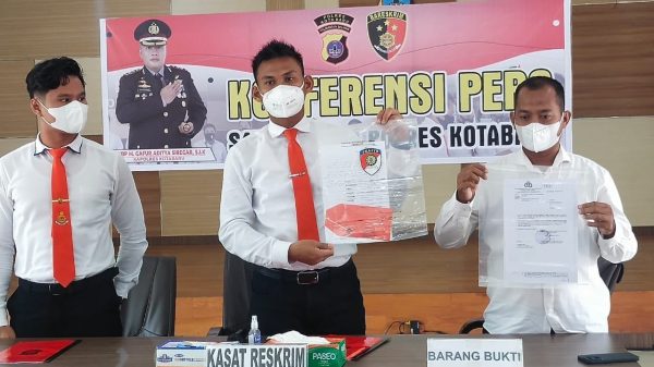 “Atas kejadian tersebut, Polres Kotabaru berhasil menyita barang bukti berupa satu buah Sertifikat Hak Milik (SHM) atas nama AD dengan luas 1.226 m², satu lembar surat pernyataan pembelian, satu lembar surat kesepakatan bersama, tersangka sendiri sudah dilakukan penahanan sejak 7 November kemarin,” pungkasnya.