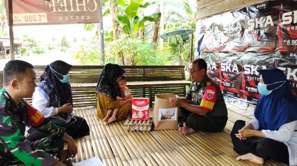 Bingkisan yang berisi susu formula, telur, biskuit, kacang hijau, vitamin diharapkan dapat membantu meningkatkan tahap tumbuh kembang anak agar dapat lepas dari kondisi stunting, oleh karenanya Babinsa dari Koramil 1022-01/Spe, Koramil 1022-02/Khi, Koramil 1022-03/Khu, Koramil 1022-04/Sti, Koramil 1022-05/Krb, Koramil 1022-06/Sln, Koramil 1022-07/Asn dan Koramil 1022-08/Mtw menyampaikan langsung bingkisan agar sampai kepada yang berhak menerima bantuan.