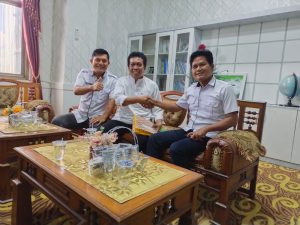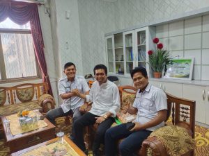 Kabarbanua.com, Tanah Bumbu -Kepala Desa Dwi Marga Utama dan Kerta Buana, Kematan Sungai Loban, Tanah Bumbu bertemu dengan Ketua Rumah Inspirasi Kreatif, Anwar Ali Wahab (tengah), Rabu (26/4/2023) siang.