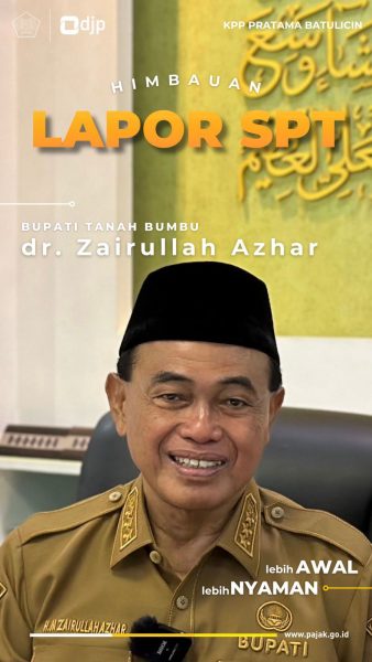 Kabarbanua.com, Tanah Bumbu- Bapak Bupati dr. H.M.Zairullah Azhar dari ruang kerja beliau, menyampaikan himbauan kepada seluruh masyarakat Kabupaten Tanah Bumbu yang telah memiliki NPWP untuk melaporkan SPT Tahunan PPh secara tepat waktu. Sebagaimana diketahui, batas pelaporan SPT Tahunan PPh adalah akhir Maret untuk SPT Tahunan PPh Orang Pribadi dan akhir April untuk SPT Tahunan PPh Badan Usaha.