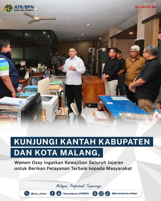 “Tolong masyarakat dilayani dengan baik. Kadang-kadang masyarakat kita kan juga datang ke kantor informasinya juga belum lengkap, jangan dimarahi. Diberikan sebuah informasi yang sebaik-baiknya. Sehingga mereka bisa terlayani dengan baik,” ucap Wakil Menteri ATR/Wakil Kepala BPN, Ossy Dermawan saat melakukan peninjauan di Kantah Kabupaten Malang, Minggu (19/01/2025).