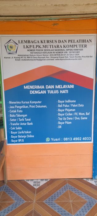 Yang dimana nantinya kegiatan ini para peserta akan di latih kursus Komputer secara Gratis dan diberikan sertifikat oleh Lembaga Kursus dan Pelatihan Mutiara.