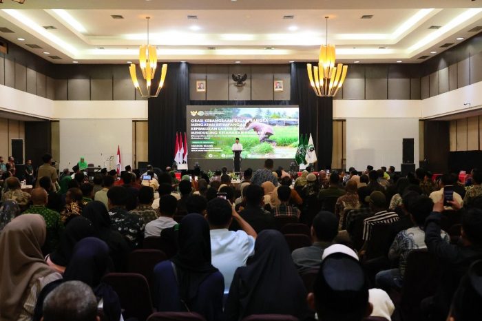 Kabarbanua.com,Maluku Utara – Menteri Agraria dan Tata Ruang/Kepala Badan Pertanahan Nasional (ATR/BPN), Nusron Wahid, menyampaikan orasi kebangsaan dalam Rapat Koordinasi (Rakor) Regional Korps Alumni Himpunan Mahasiswa Islam (KAHMI), di Kota Ternate, Sabtu (23/08/2025). Dalam orasinya, ia menegaskan pentingnya menggunakan keadilan sebagai dasar dalam setiap kebijakan, khususnya terkait pengelolaan tanah nasional.