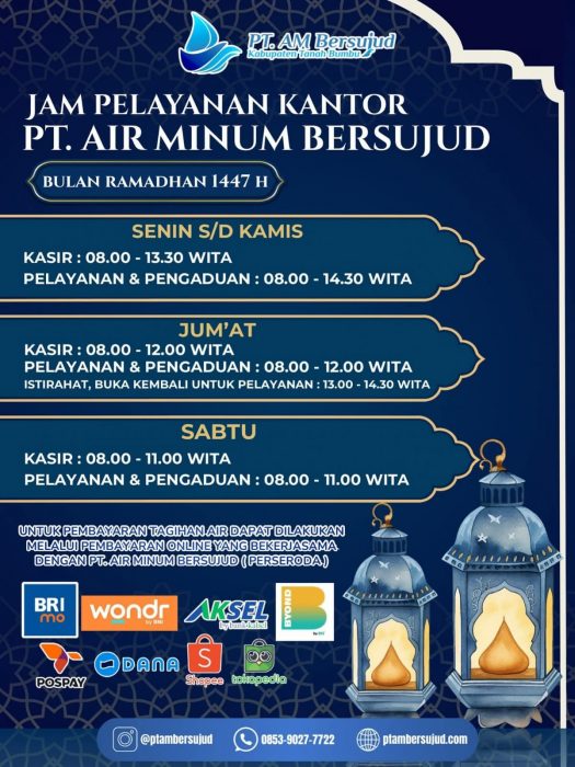 Sambut Bulan Suci Ramadhan, PT.Air Minum Bersujud Berlakukan Penyesuaian Jam Perubahan Layanan