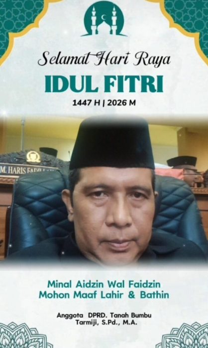 “Atas nama pribadi dan keluarga, saya mengucapkan Selamat Hari Raya Idul Fitri 1447 Hijriah. Minal aidin walfaidzin, mohon maaf lahir dan batin,” ujar Tarmiji.