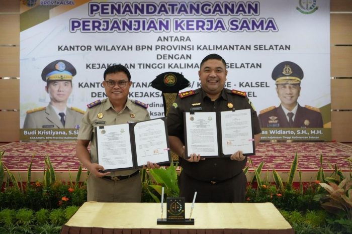 BPN Provinsi Kalimantan Selatan Lakukan Penandatanganan Perjanjian Kerja Sama Dengan Kejaksaan Tinggi Provinsi Kalimantan Selatan